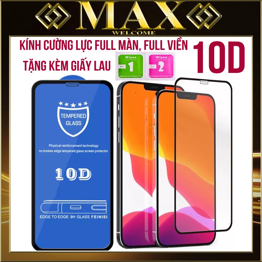 Giới thiệu Kính Cường Lực Iphone Full màn 10D ,tặng giấy lau6/6plus/6s/6splus/7/7plus/8/8plus/x/xr/xs/11/12/13/pro/max/plus/promax