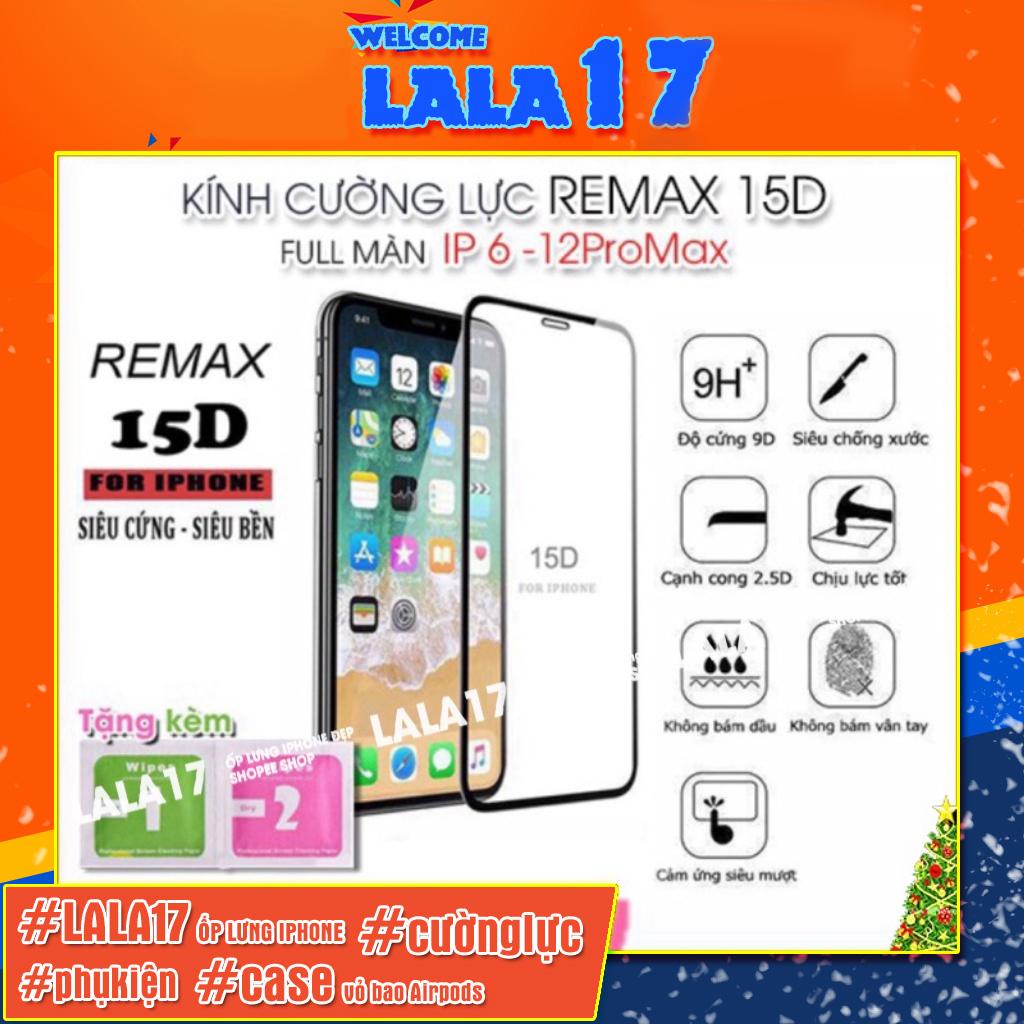 Kính cường lực iphone Full Màn 15D REMAX 6/6plus/6s/6splus/7/7plus/8/8plus/x/xr/xs/11/12/13/pro/max/plus/promax lala17