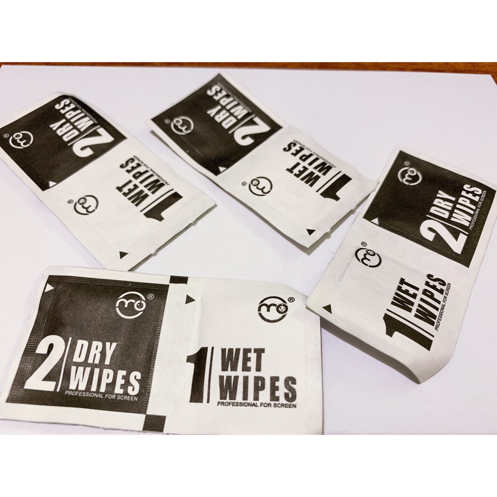Vệ sinh sạch màn hình iphone bằng khăn hoặc 2 miếng giấy ướt và khô đánh dấu số 1,2 kèm theo.