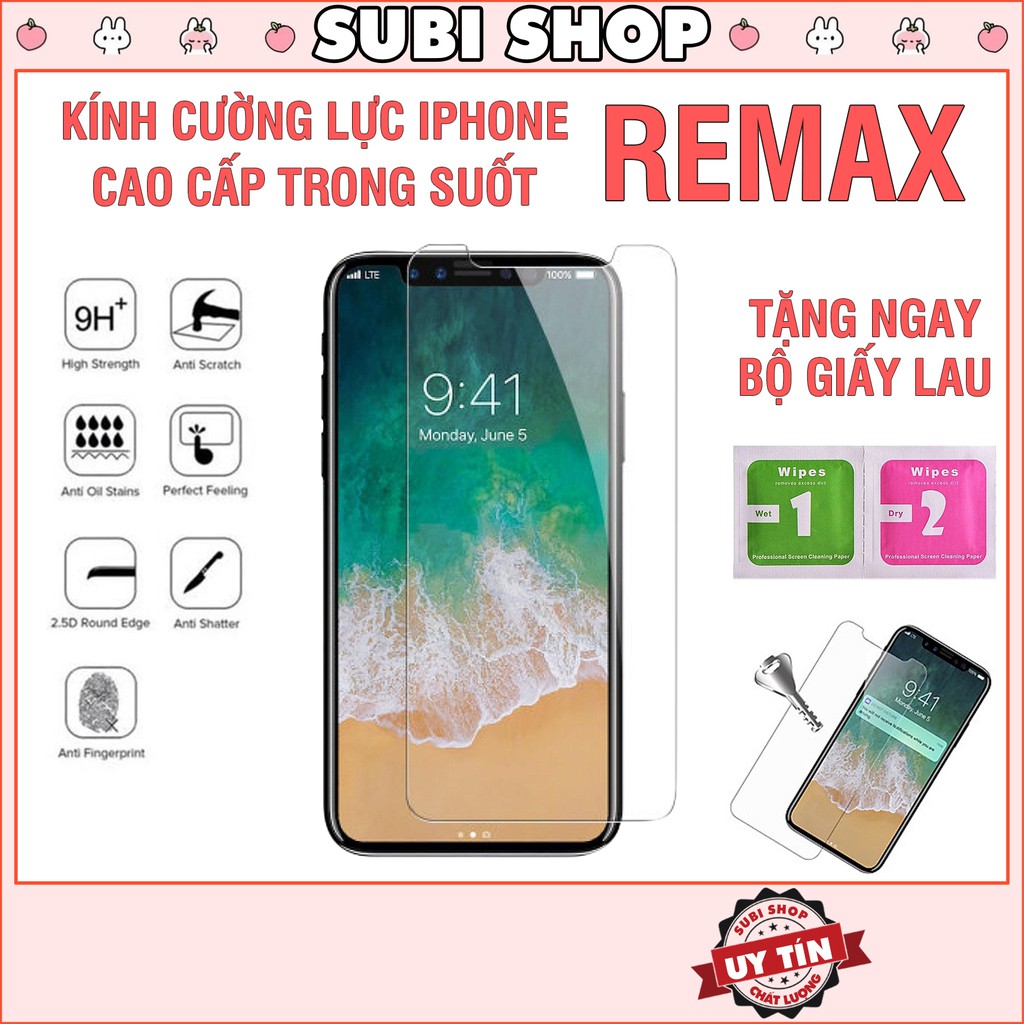 Kính cường lực iphone REMAX Cao Cấp Siêu Mỏng 6/6s/7/7plus/8/8plus/plus/x/xr/xs/11/12/13/pro/max Subi Shop