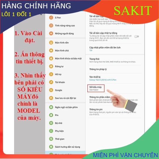 2. Vào Cài Đặt- Thông Tin Thiết Bị - Bạn Nhìn Bên Phải Số Kiểu Máy- Đó Model máy Bạn
