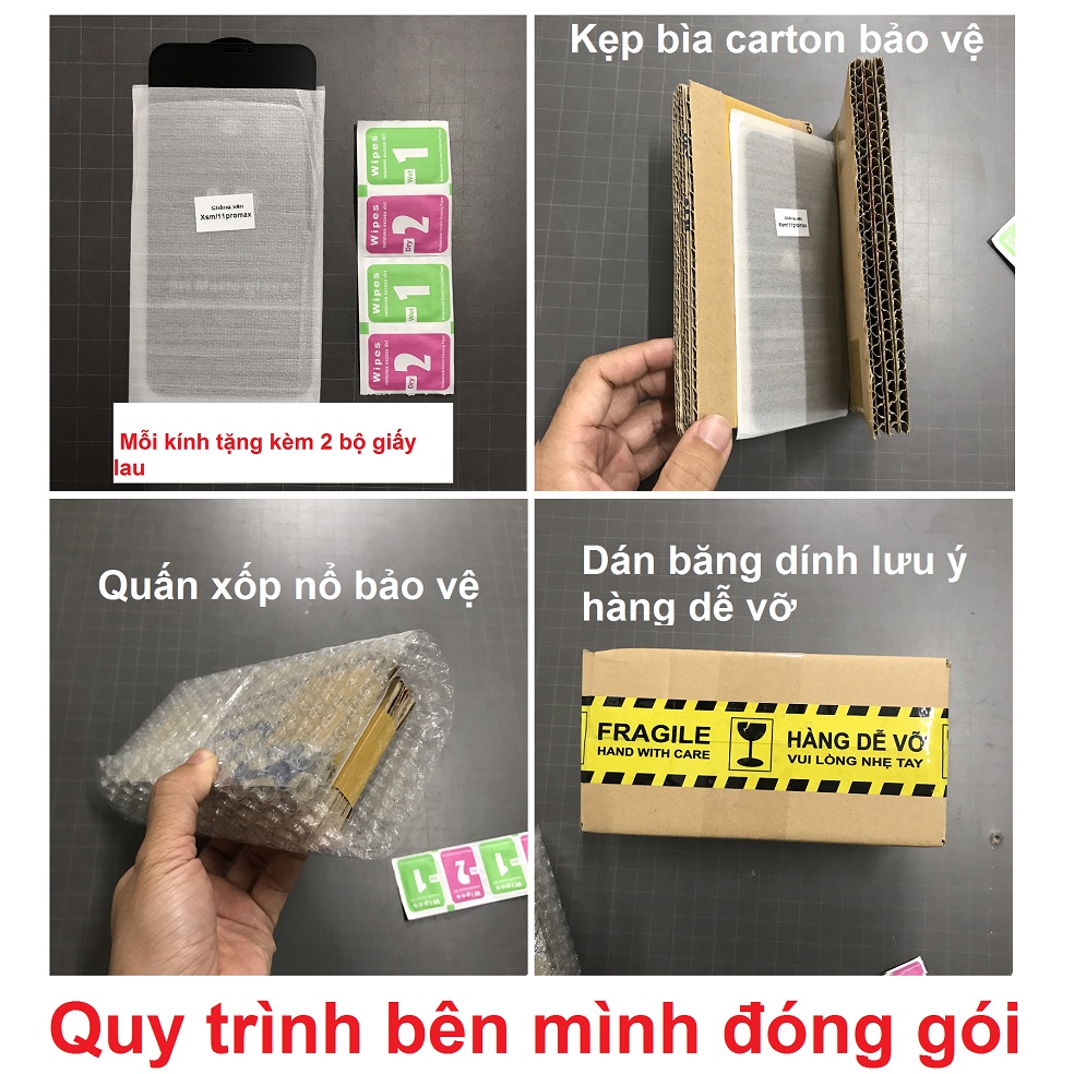 - Bộ sản phẩm gồm: 01 kính cường lực + 01 bộ khăn ướt và 01 khăn khô để lau màn hình