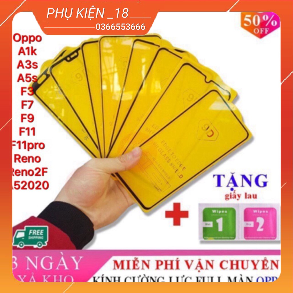 Kính cường lực Oppo A1k, A3s, A5s, A7, F7, F9, F11, F11 Pro, K3, Reno, Reno2, Reno2F, A5 2020, A9 2020