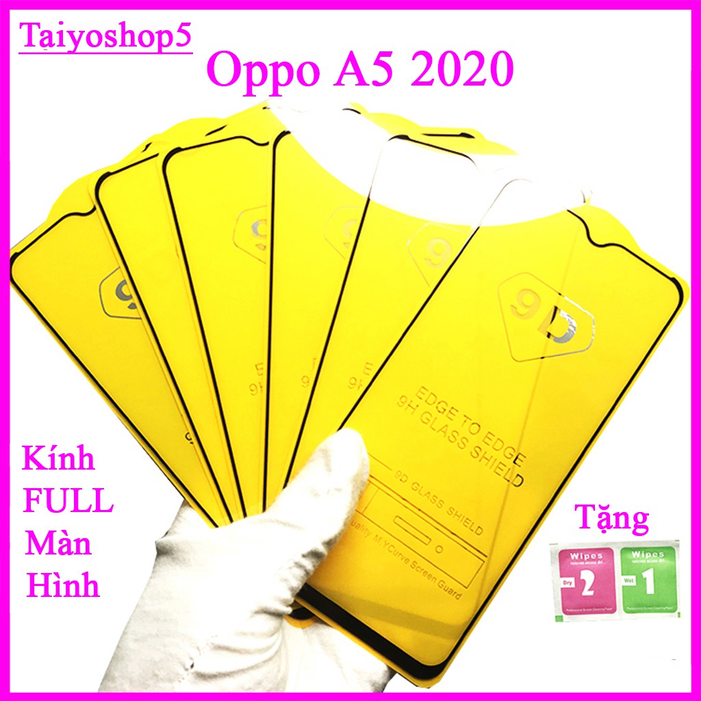 Kính cường lực Oppo A5 2020 , Kính cường lực full màn hình, Ảnh thực shop tự chụp, tặng kèm bộ giấy lau kính taiyoshop5