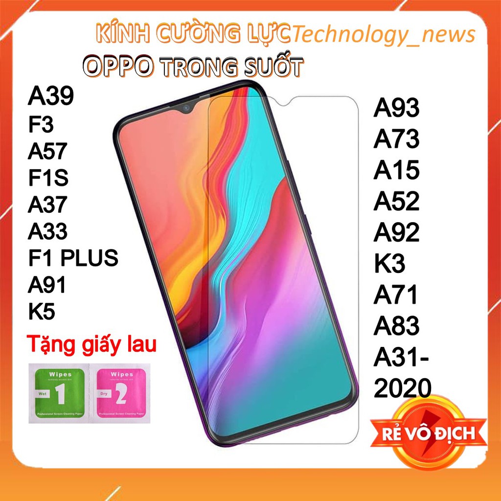 Giới thiệu Kính cường lực Oppo A93/ A73/ A15/ A52/ A92/ A31 2020/ K3/ A71/ A83/ A39/ F3/ A57/ F1s/ A37/ A95/ F1 plus/ A91/ K5