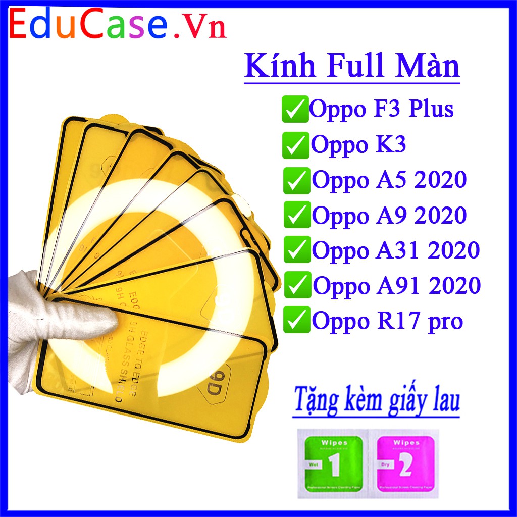 Kính cường lực OPPO F3 plus/ K3/ A5 2020/ A9 2020 / A31/ A91/ R17 Pro Full màn hình , tặng kèm bộ giấy lau Educase.vn