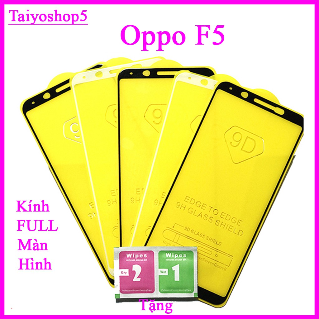 Kính cường lực Oppo F5 , Kính cường lực full màn hình, Ảnh thực shop tự chụp, tặng kèm bộ giấy lau kính taiyoshop5
