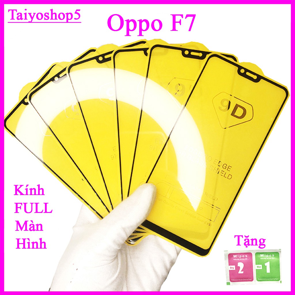 Kính cường lực Oppo F7 , Kính cường lực full màn hình, Ảnh thực shop tự chụp, tặng kèm bộ giấy lau kính taiyoshop5