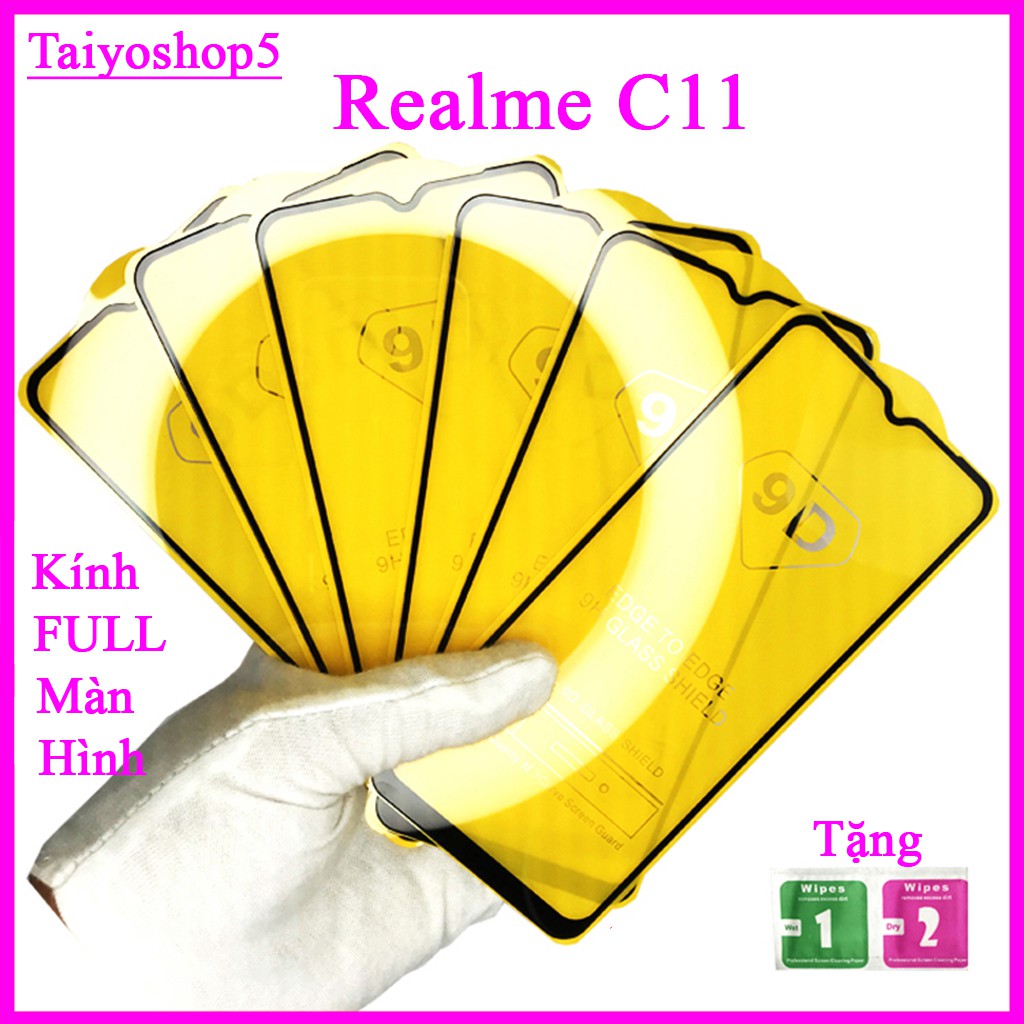 Kính cường lực REALME C11, Kính cường lực full màn hình, Ảnh thực shop tự chụp, tặng kèm bộ giấy lau kính