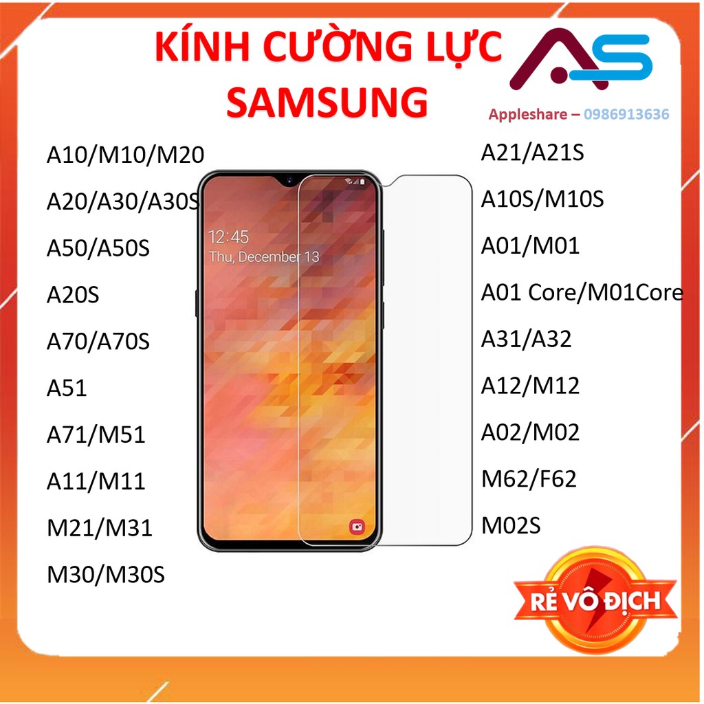 Kính cường lực Samsung A10/M10/M20/A20/A30/A50/A70/ A51/A71/M51A11/M11/M21/M31/M30/A21/A01/M01/M62/A03/A12/M12/M02S/A02