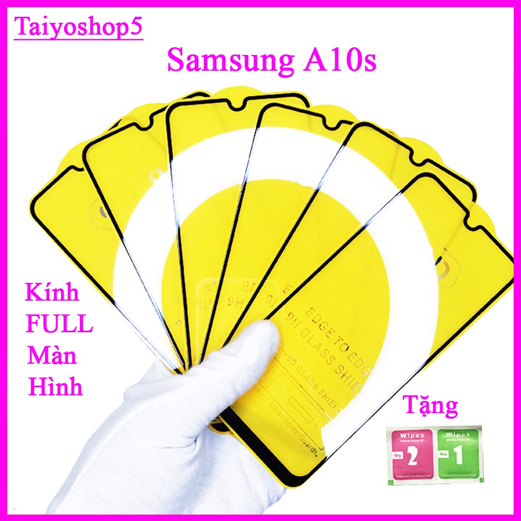 Kính cường lực Samsung A10S full màn hình, Ảnh thực shop tự chụp, tặng kèm bộ giấy lau kính taiyoshop5