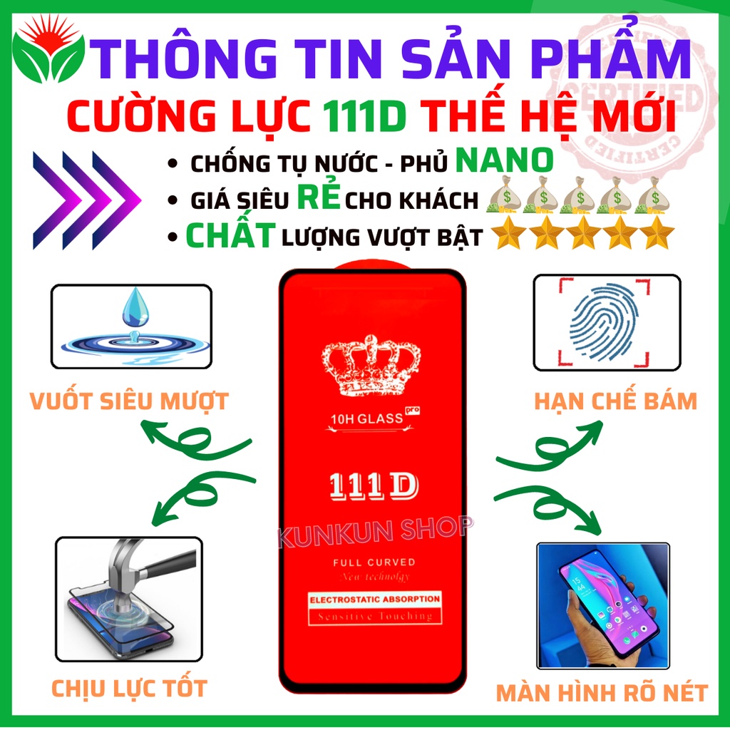 1. Công nghệ khắc lạnh 111D, được làm từ chất liệu cao cấp, chống cháy nổ. Màng thủy tinh gia công chất lượng hàng đầu, bảo vệ tốt hơn cho điện thoại của bạn.