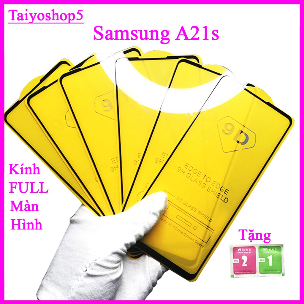 Kính cường lực Samsung A21S full màn hình, Ảnh thực shop tự chụp, tặng kèm bộ giấy lau kính taiyoshop5
