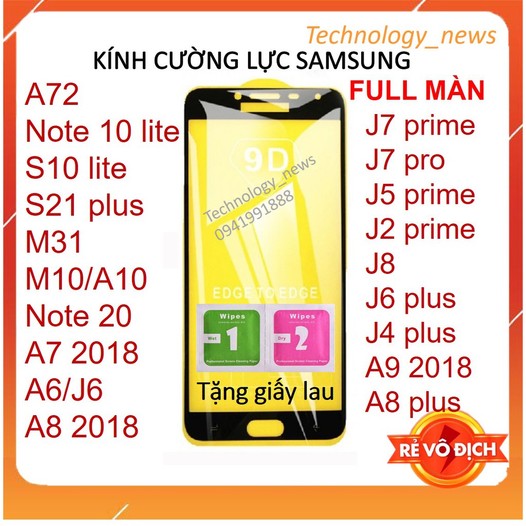 Kính cường lực Samsung Full màn cho A72,Note 10 lite,S10 lite,J6 plus,J4 plus,A8,A6,J6,A7,A9,J8,J7 prime,J7 pro,J5prime