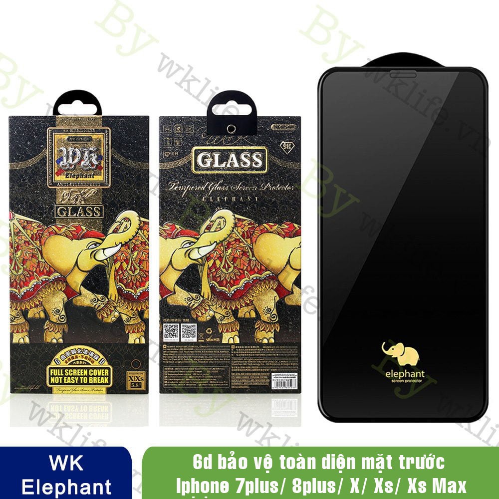 Kính Cường Lực Siêu Cứng Elephant (Con Voi) Wk Viền Siêu Nhỏ dành cho cho 7plus 8plus X Xsmax 11promax 12 13pro 13promax