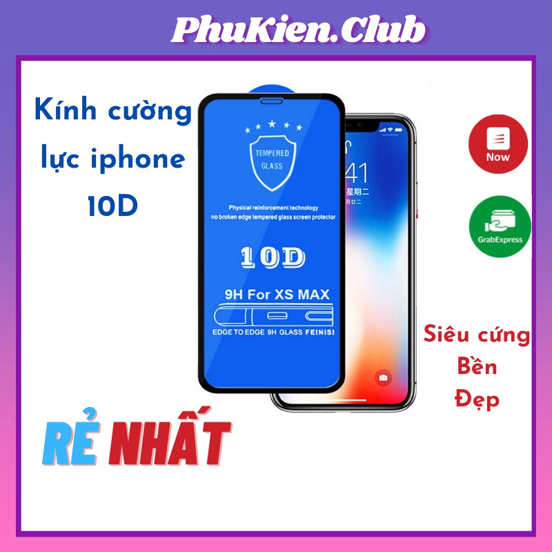 Kính cường lực toàn màn hình bo cạnh 10D xịn cho 6 6s 7 8 9 6P 7P 8P X XR XS XSMax