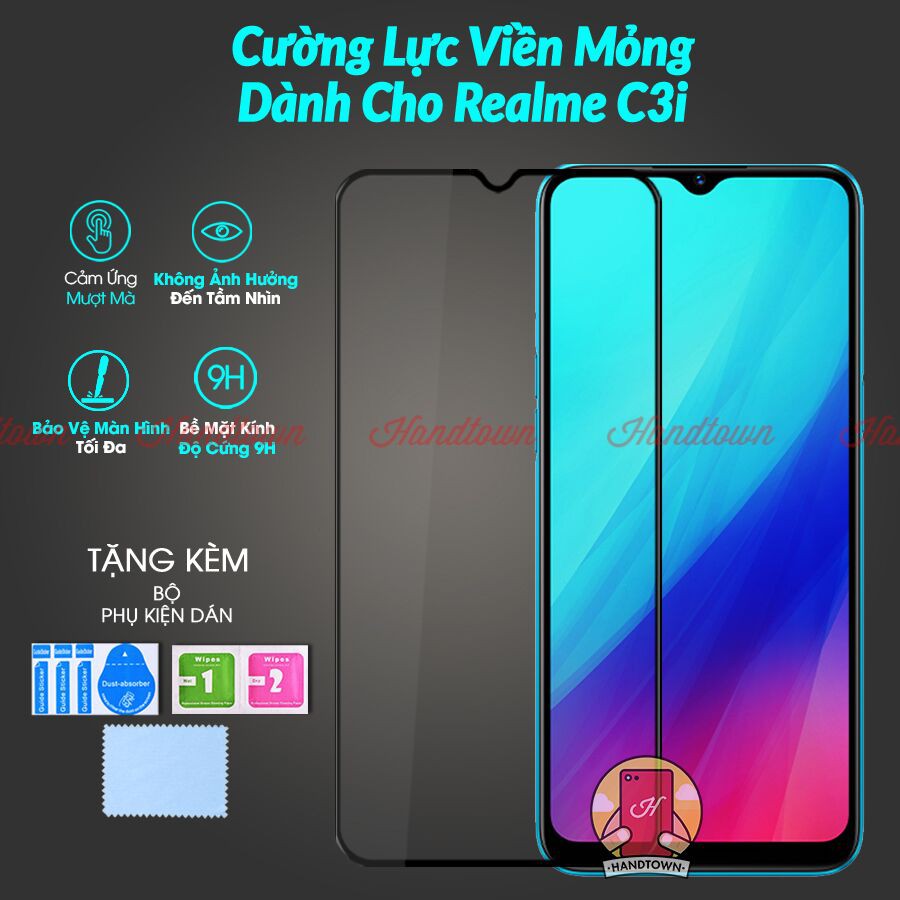 Giới thiệu Kính Cường Lực Viền Mỏng Realme C3i Bản Không Vân Tay Viền Mỏng Không Lấn Màn
