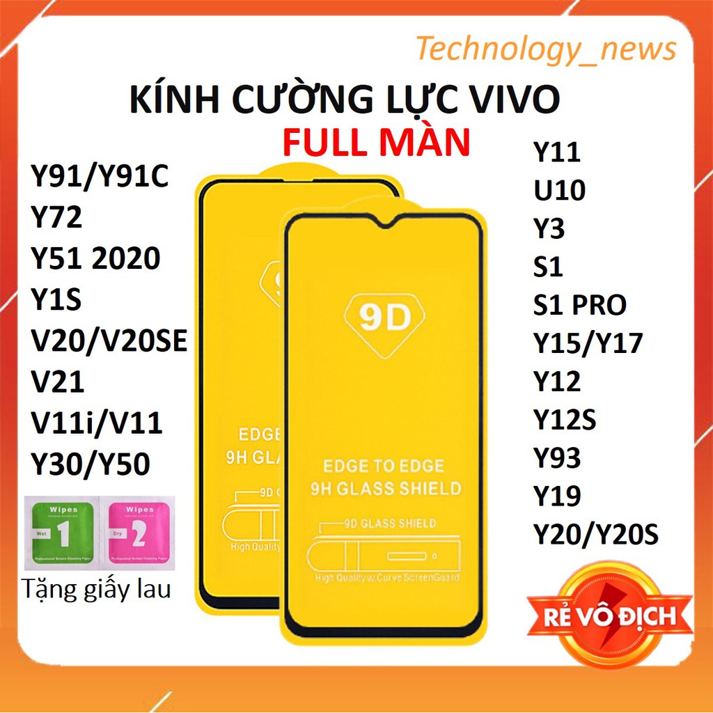 Kính Cường Lực Vivo FULL Màn 9D Y11/U10/Y3/S1 pro/Y15/Y12/Y12s/Y20/Y20s/Y72/Y51/Y91C/V11i/Y93/Y91/Y1s/V20/V20 se/Y19/V21