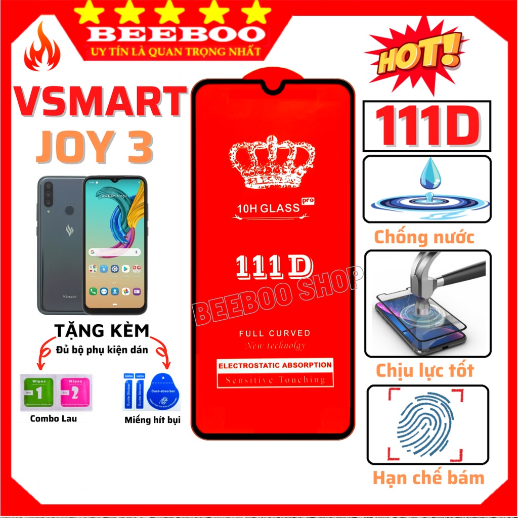 Điện Thoại & Phụ Kiện > Phụ kiện > Miếng dán màn hình || Kính cường lực Vsmart Joy 3 - Cao Cấp - Full màn hình 111D - Độ cứng 10H - Độ trong suốt cực cao [FreeShip_50K].Còn hàng