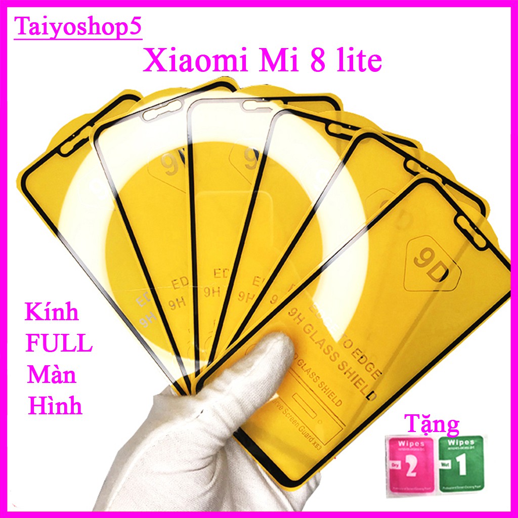 Kính cường lực Xiaomi Mi 8 Lite full màn hình, Ảnh thực shop tự chụp, tặng kèm bộ giấy lau kính taiyoshop5
