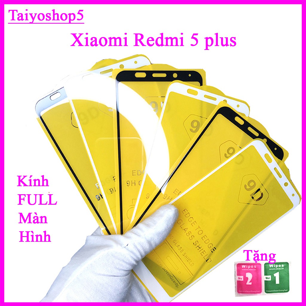 Kính cường lực Xiaomi Redmi 5 Plus full màn hình, Ảnh thực shop tự chụp, tặng kèm bộ giấy lau kính taiyoshop5