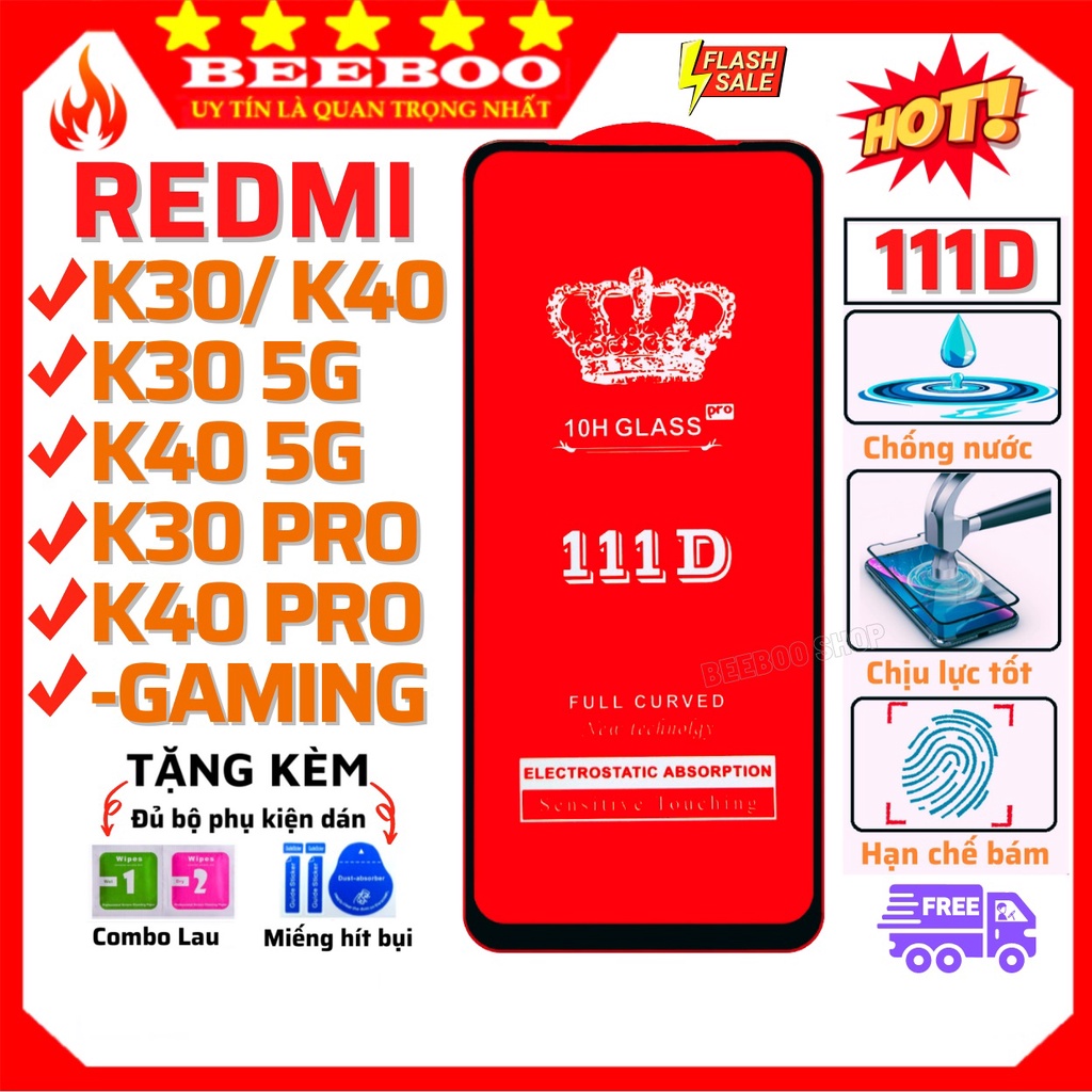 Kính Cường Lực Xiaomi Redmi K30/ K30 5G/ K30 PRO/ K40/ k40 5G/ K40 PRO/ K40 GAMING -Dán Full màn hình 111D và Trong suốt