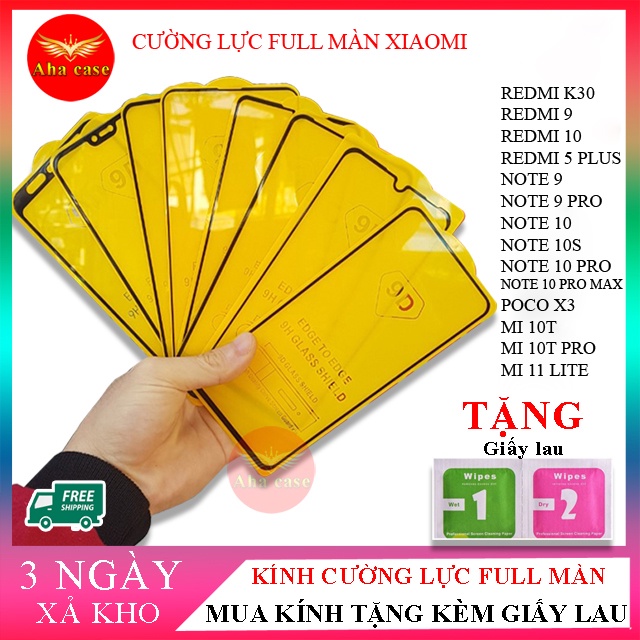 [FREE SHIP CHO ĐƠN HÀNG TỪ 50K TRỞ LÊN] - KHI ÁP MÃ FREE SHIP CỦA SHOPEEKhi mua Kính cường lực Xiaomi redmi note 9, Xiaomi redmi note 9 pro, Xiaomi redmi note 10 pro, Xiaomi Redmi note 10 Xiaomi Redmi note 10s, xiaomi redmi 9, xiaomi redmi K30, Xiaomi redmi 5 Plus, xiaomi mi 10t, xiaomi poco x3, Xiaomi Redmi 10, Xiaomi Redmi note 10 pro max, Xiaomi Mi 11 Lite Full màn + Tặng giấy lau
