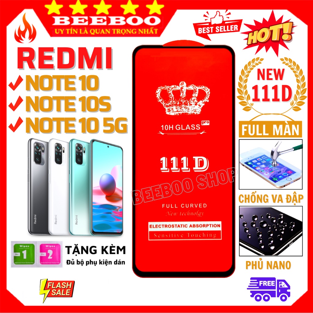 Kính cường lực Xiaomi Redmi Note 10/ 10s/ 5g - Dán màn hình xiaomi redmi note 10/ 10s - Full màn hình 111D - Ảnh thật 100%🆘 BeeBoo cam kết