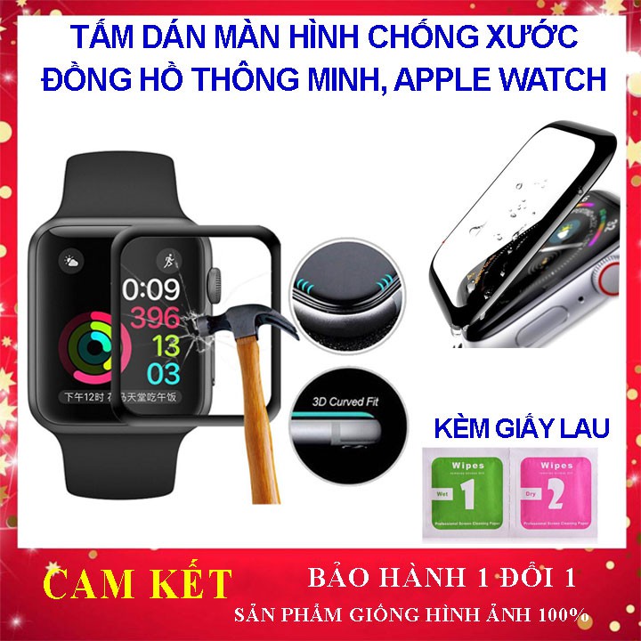 Kính dán màn hình đồng hồ thông minh, Apple Watch cong 3D full chống trầy xước, chống nước, dán dễ dàng