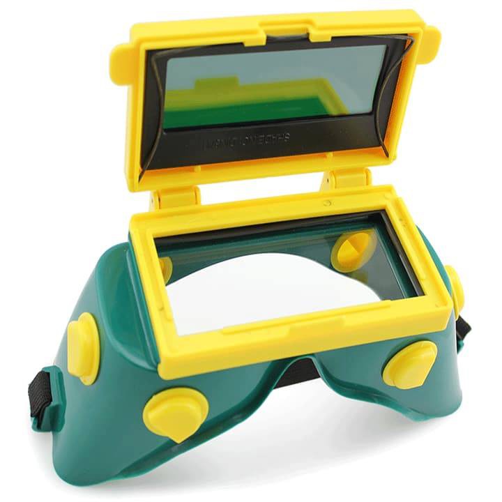 Kính hàn điện tử bằng nhựa dẻo ốp sát mắt giống như 1 chiếc kính đi biển, có dây thun co giãn phù hợp với mọi kích cỡ người thợ. có khả năng chống được khói hay khí hàn bay vào