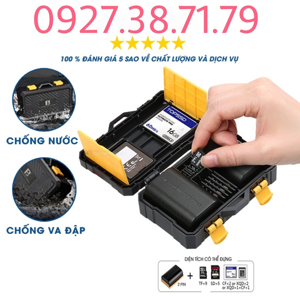 🔵 Hộp đựng thẻ nhớ và pin máy ảnh chính hãng FB chống nước, chống va đập, chống mài mòn đựng được 2 viên pin máy ảnh, 9 thẻ nhớ TF (MicroSD), 5 thẻ nhớ SD, 2 thẻ nhớ CF hoặc 2 thẻ XQD