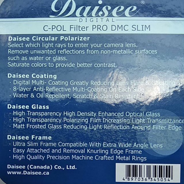 Giới thiệu Kính Lọc hiệu ứng 62mm Daisee C-POL Pro DMC Slim
