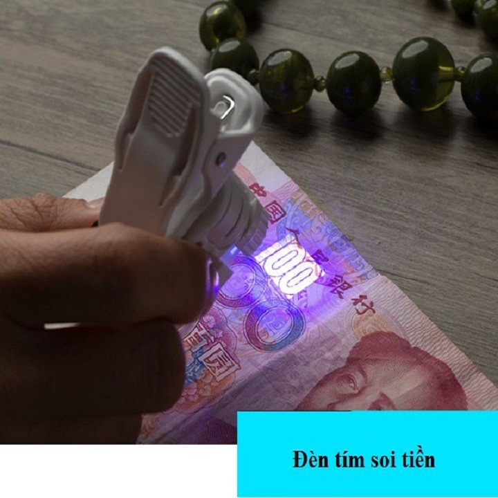 Kính lúp 60x kẹp điện thoại FREESHIP Kính lúp đa năng có Led Tím UV - Video soi thực tế