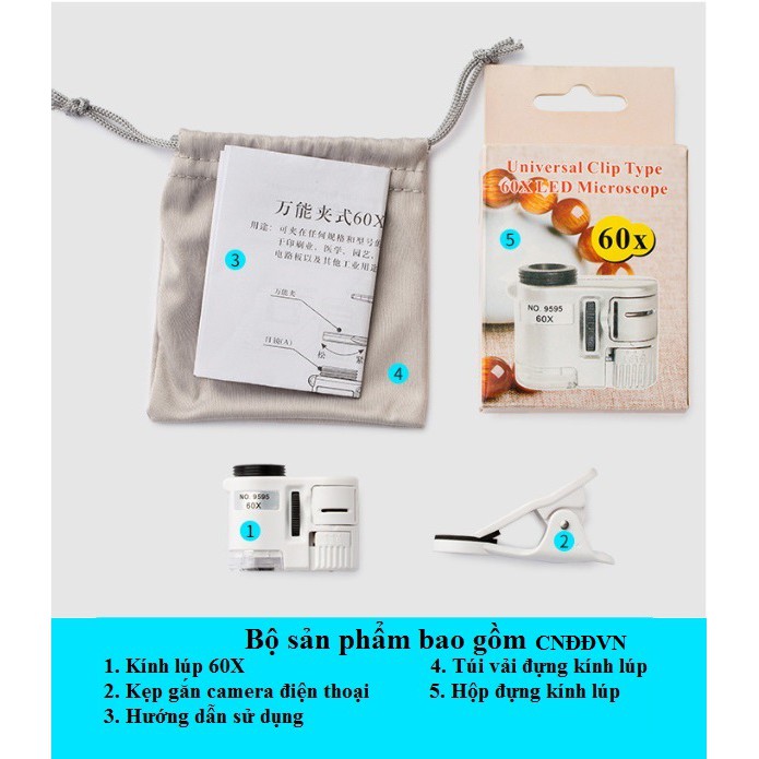 Nhà cửa & Đời sống > Dụng cụ & Thiết bị tiện ích > Dụng cụ > Dụng cụ đo lường || Kính lúp 60x kẹp điện thoại FREESHIP Kính lúp đa năng có Led Tím UV - Video soi thực tếCòn hàng