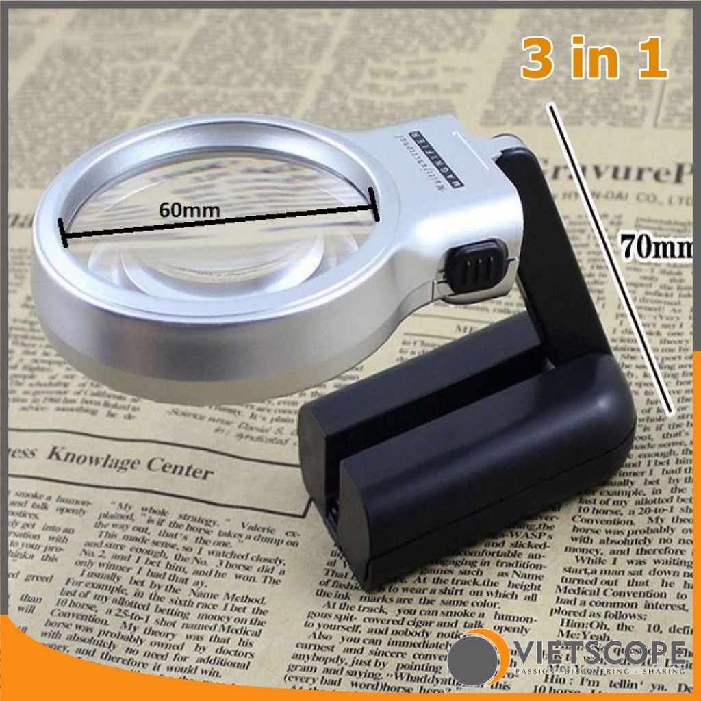 Kính lúp cầm tay đa năng 3 in 1 có đèn LED
