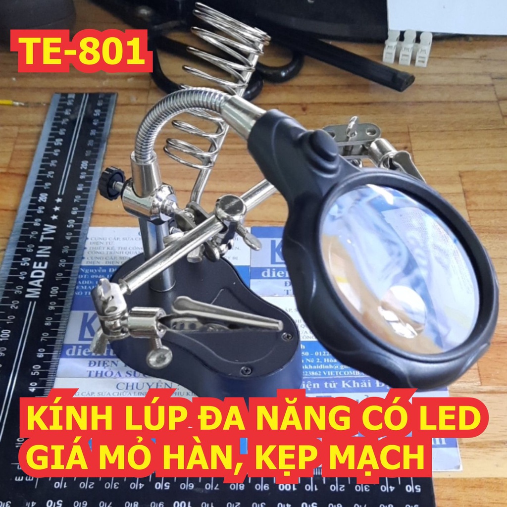 KÍNH LÚP ĐA NĂNG CÓ LED, GIÁ MỎ HÀN, KẸP MẠCH TE-801 kde3576