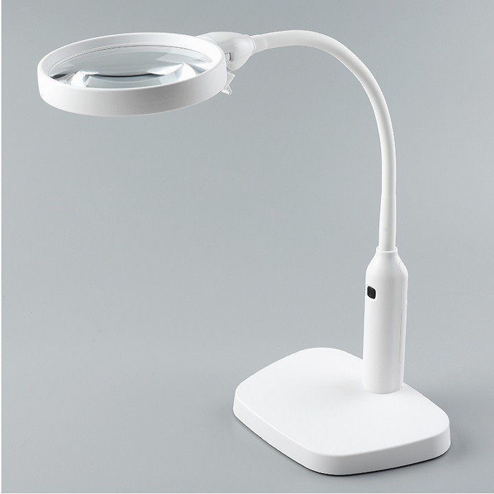 Kính lúp để bàn có bộ phận chân đế và kính được nối lại với nhau qua dây uốn bằng thép không gỉ. Sản phẩm có thể xoay 360 độ. Điều này thuận tiện khi làm việc, học tập để phù hợp với nhiều công việc khác nhau