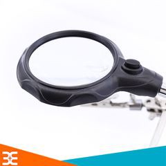 Kính Lúp Để Bàn MG16126 Có Tay Kẹp Có ĐènKính Lúp Để Bàn MG16126 Có Tay Kẹp có 2 độ phóng đại x3.5 và x12 giúp nhìn các linh kiện, IC nhỏ dễ dàng. Bộ sản phẩm có 2 tay kẹp mạch để cố định mạch hàn và 2 đèn led chiếu sáng giúp cho việc hàn hay sửa chữa dễ dàng hơn. Chân kính lúp được thiết kế chắc chắn và phần thân được thiết kế thông minh có thể điều chỉnh lên xuống dễ dàng. Bộ Kính Lúp để bản ngoài phần tay kẹp và kính lúp còn được đi kèm thêm 1 kệ để tay hàn rất tiện lợi. Một sản phẩm tích hợp 4 trong 1 thông minh rất tiện lợi nhỏ gọn và mức giá phải chăng rất thích hợp cho các bạn kỹ thuật và các bác thợ cần sử dụng hàn nhiều