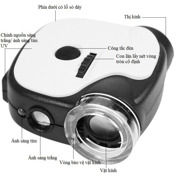 ✔️ Nguồn sáng 2 đèn LED trắng + 1 đèn UV