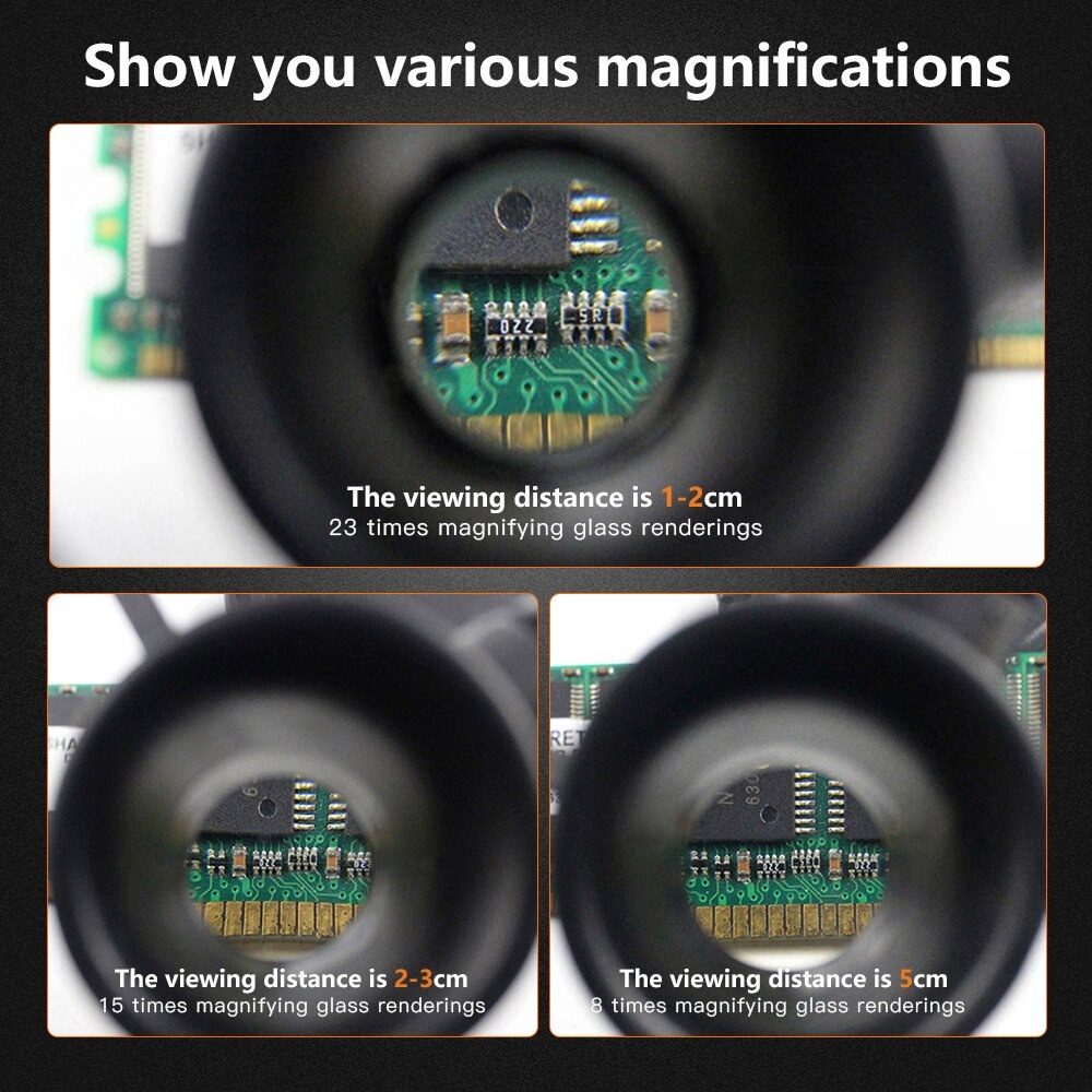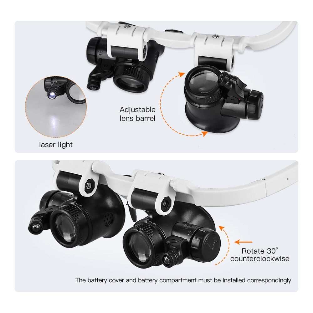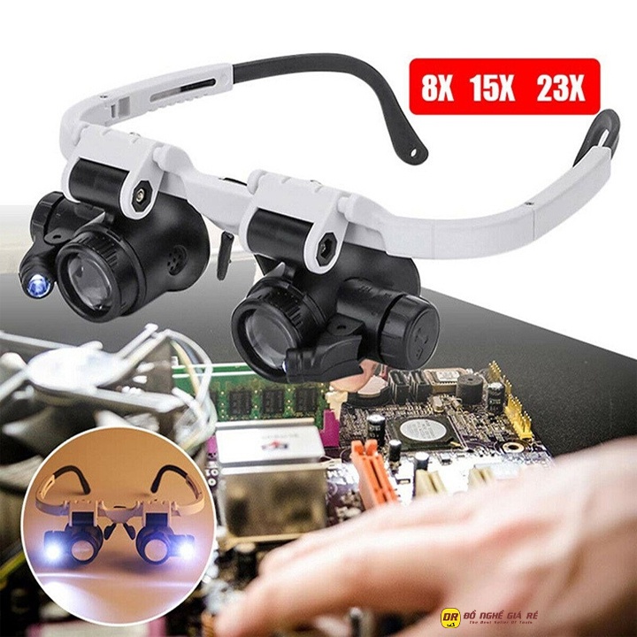 Kính lúp phóng đại 8X 15X 23X có đèn LED dùng sửa chữa đồng hồ và trang sức dạng đeo mắt