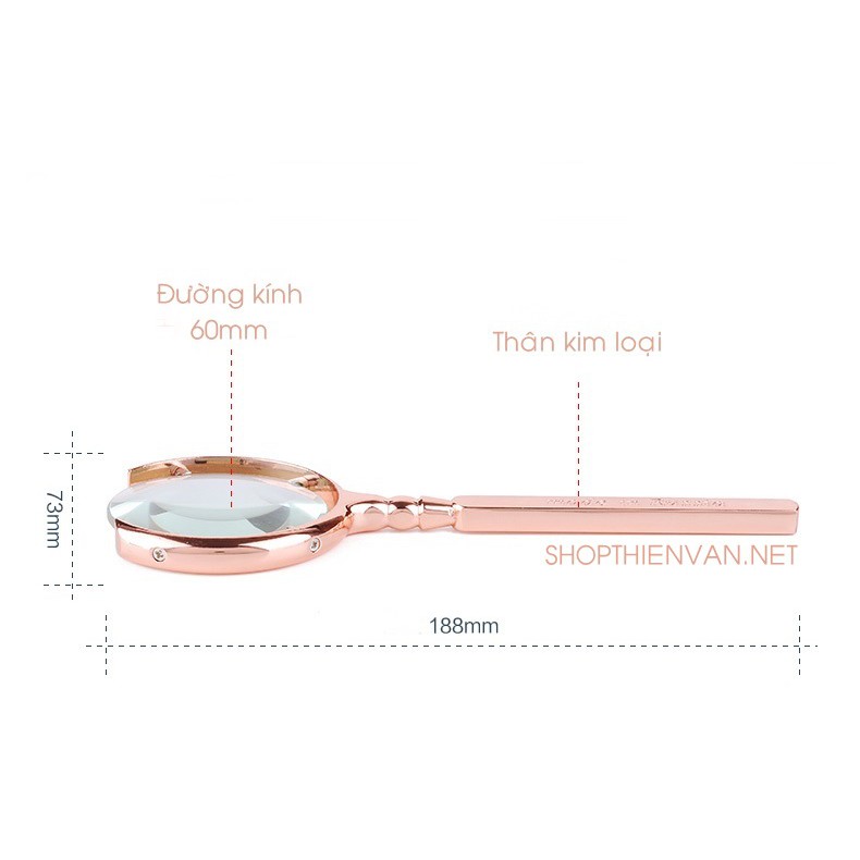 Kính lúp Russia Magnifier có vẻ ngoài trông cực kì bắt mắt với đường kính 60mm, tay cầm chắc chắn, được thiết kế bộ phận giữ phần kính độc đáo và sáng loáng với màu chrome. Cầm khá nặng nay nên khi cầm nó lên cho bạn cảm giác như đang cầm một món đồ cổ giá trị. Ngoài sử dụng thông thường, Kính lúp Russia đặc biệt có tác dụng trang trí rất đẹp và sang trọng trên bàn làm việc, kệ sách ...THÔNG SỐ KỸ THUẬT