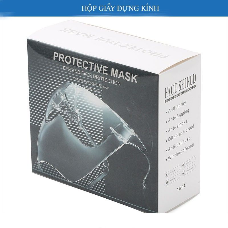 +Tấm Chắn Chống Giọt Bắn Phòng Dịch Bảo Hộ Kháng Khuẩn 1 Hộp: 1 cái (1 mặt nạ, 1 cặp gọng kính)