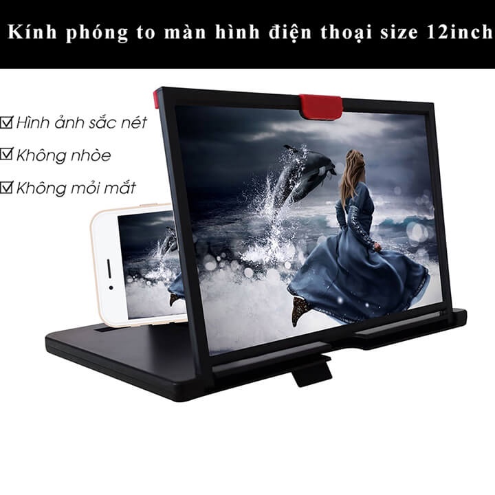 Kính phóng to màn hình điện thoại 5D 12 inch siêu lớn sắc nét chống lóa mỏi mắtBạn thường xuyên bị mỏi mắt vì nhìn quá lâu vào màn hình điện thoại bé tí ?