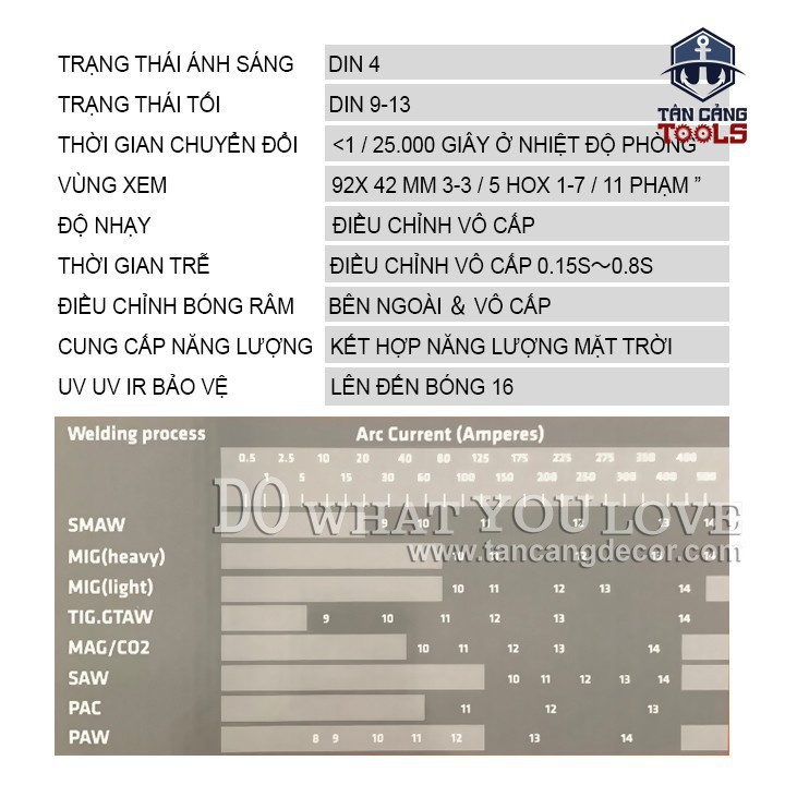 Kính hàn tự động điều chỉnh sáng tối khi có hồ quang và khi ngắt hồ quang , có thêm núm vặn ở phía ngoài để điều chỉnh sáng hơn hoặc tối hơn cho phù hợp với mắt mỗi người và phù hợp với điều kiện ánh sáng nơi làm việc