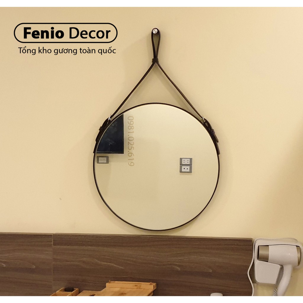 Giới thiệu Kính treo tường viền dây da Kính tròn trang điểm decor phòng ngủ nhà tắm phòng khách - Đường kính 50cm