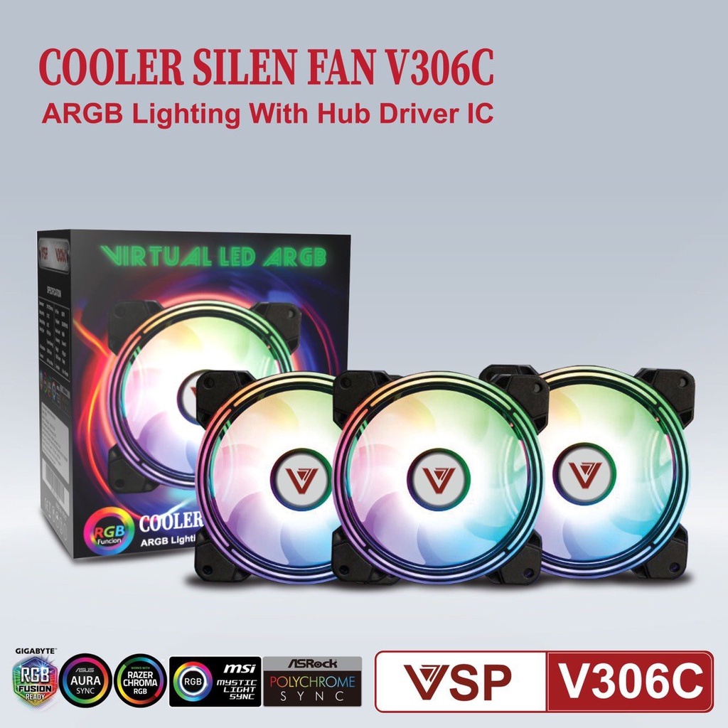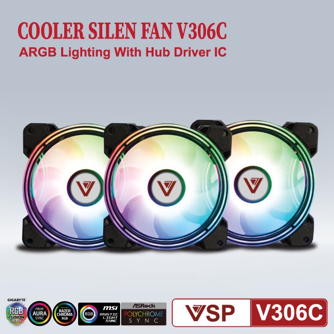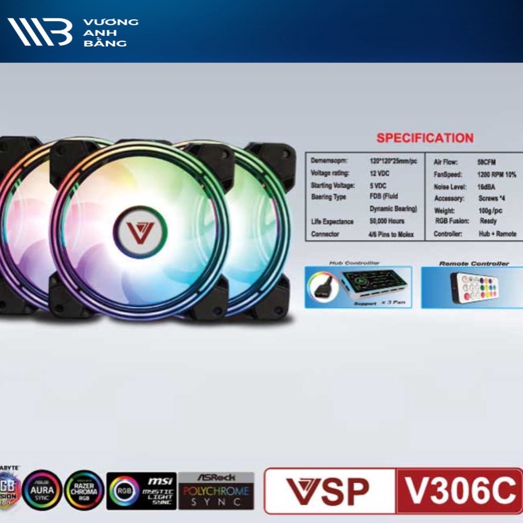 Máy tính & Laptop > Linh Kiện Máy Tính > Quạt và Tản Nhiệt || Bộ kit 3 Fan Led RGB + Hub VSP V306CCòn hàng