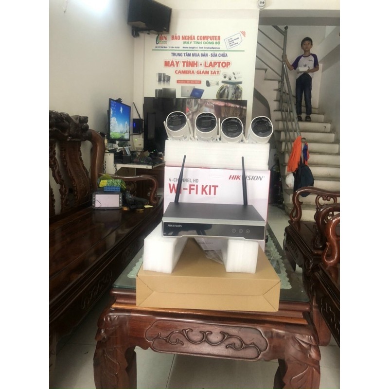 -Trọn bộ NK42W0 với đầy đủ thiết bị bao gồm : 1 đầu thu NVR WIFI DS-7104NI-K1/W/M 4 camera IP WIFI : DS-2CV1021G0-IDW1 4 nguồn cấp cho camera Phụ kiện : cáp HDMI , cáp mạng , chuột , đầu nối cáp chống nước là giải pháp trọn gói và tiện ích dành cho hộ gia đình, cửa hàng, văn phòng … Với 4 camera quan sát chất lượng hình ảnh sắc nét cho tầm quan sát rộng. Hỗ trợ nền tảng Hik-Connect – Siêu ổn định – Tốc độ truy cập cực khủng – Miễn phí trọn đời – Máy chủ đặt tại Việt Nam.