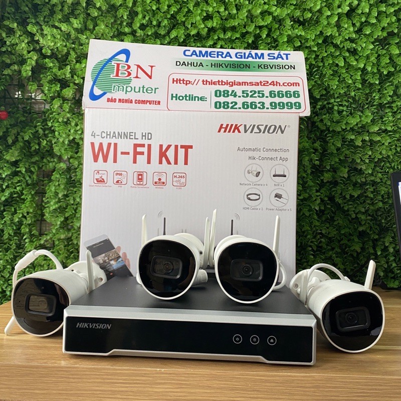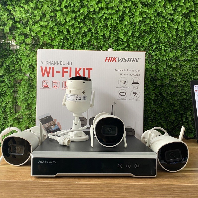Bộ Kit 4 Camera IP WIFI Hikvision Không Dây Ngoài Trời 2MP Cắm là chạy.