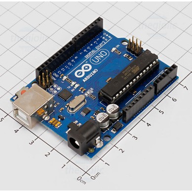 - ARDUINO UNO R3 là sản phẩm thiết kế bởi ARDUINO.CC, là phiên bản cho người muốn tiếp cận với vi điều khiển 1 cách nhanh chóng và thuận tiện