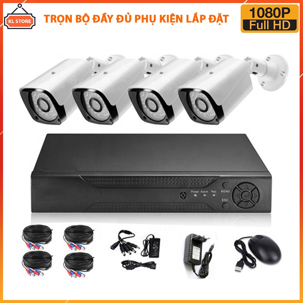 Trọn bộ 4 mắt Camera giám sát AHD Full HD 1080P và đầy đủ phụ kiện lắp đặt